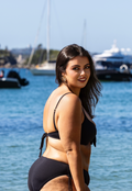 Effortless and enduring, the Eterna Bikini is a study in timeless femininity. Defined by its softly structured cups and elegant front-tie detail, this style offers a flattering, adjustable fit that enhances the natural shape of the body. Delicate shoulder straps add lightness and balance, while the smooth, clean-cut bottoms sit comfortably on the hips for an understated, confident finish.